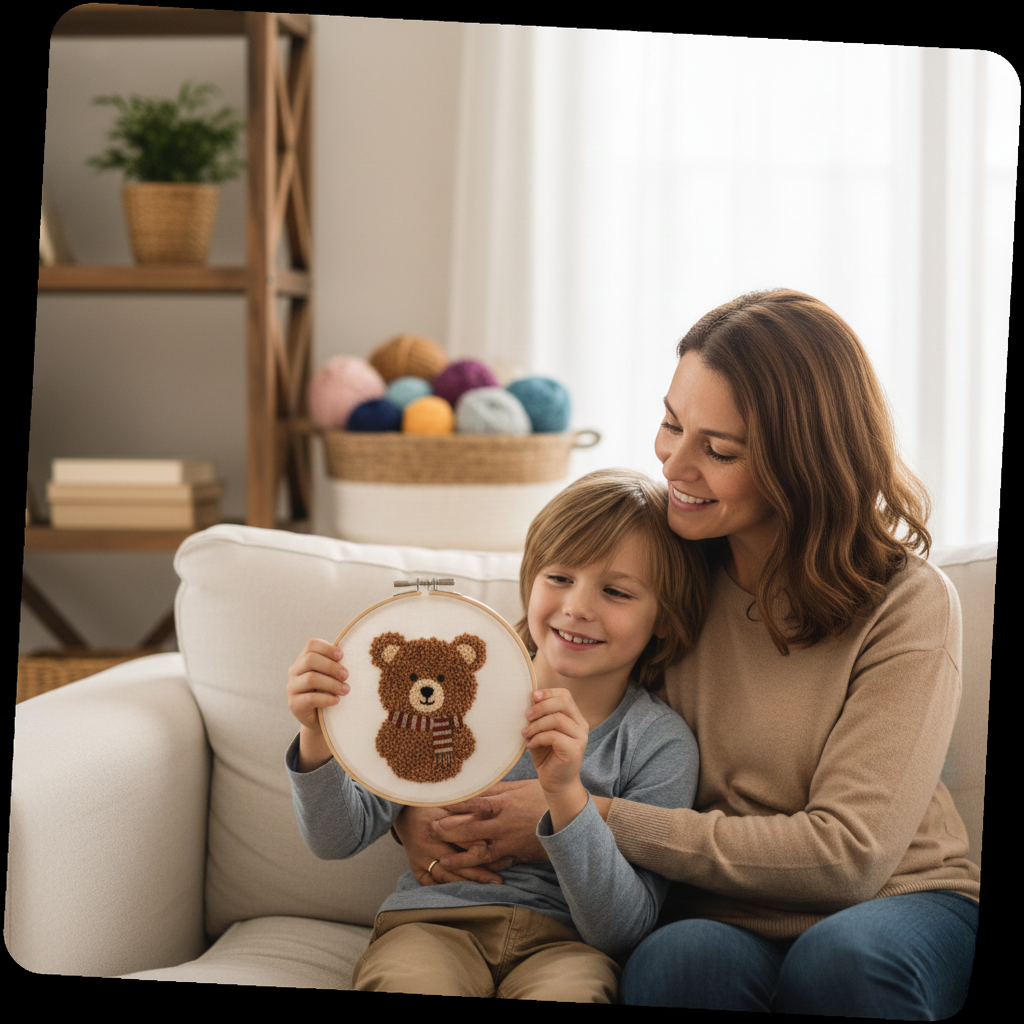 Yes. PunchyPals uses soft yarn, rounded tools, and simple instructions. There are no batteries, screens, or sharp objects. Adult supervision is recommended for younger children.